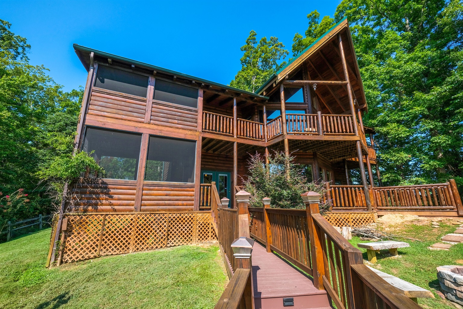 - 2 acres, cannot see cabins from back at all, nice views, nice yard area, covered picnic area with charcoal, AND propane grill